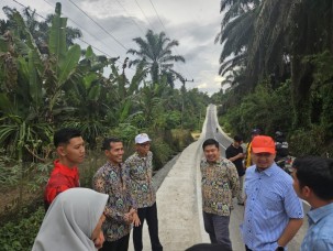 Kampar - Anggota DPR RI Dr. Syahrul Aidi Maazat meninjau pembangunan jalan Koto Da